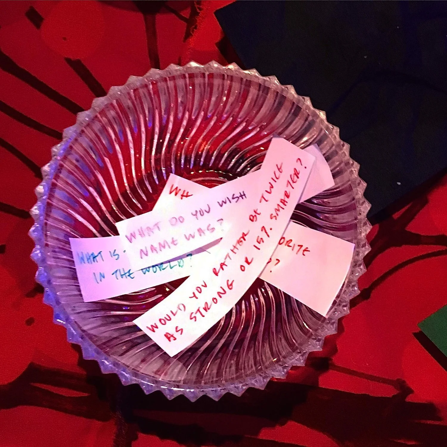 Intermission: is a four-course dinner evening event for femme-identifying individuals to connect with strangers and deepen connections with friends and acquaintances. The goals of the event are connection, relaxation, and nourishing the mind and the body. The evening begins with cocktails while Conarro compiles a collection of photos of each guests’ hand to document the presence and integral participation of each guest. During dinner, guests are invited to take hand-written, inconsequential questions from bowls around the table as entry points of dialogue. For every new course, Conarro presents a new seating arrangement. Guests change their seats and are surrounded by new people, new cuisine, and new circumstances. As they leave, guests are given a printed original work of two hands in a gesture of offering created by Conarro for the event.